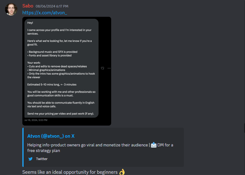 Before joining the academy, Sabo was making $70 per month Video Editing. In the first month, he began making $1500 from a SINGLE CLIENT!