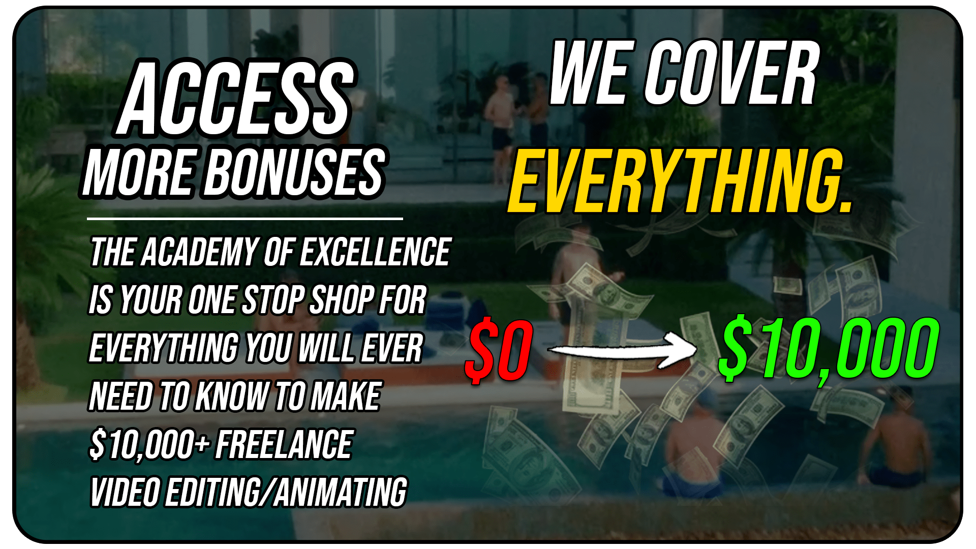 Ultimately, while other courses will teach you how to keyframe and become a preset editor, We teach you how to make money from doing what you love.